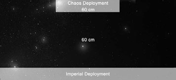 - Players then alternate placing a single cruiser or squadron of escorts within their deployment zone up to 30 cm from the table edge until all models have been placed. (See map for deployment zones)