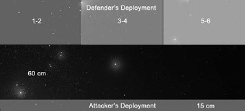Set up a 180 cm × 120 cm table. The blockading force is stationed on the edges of the system, so the battle will take place in either the outer reaches or deep space.