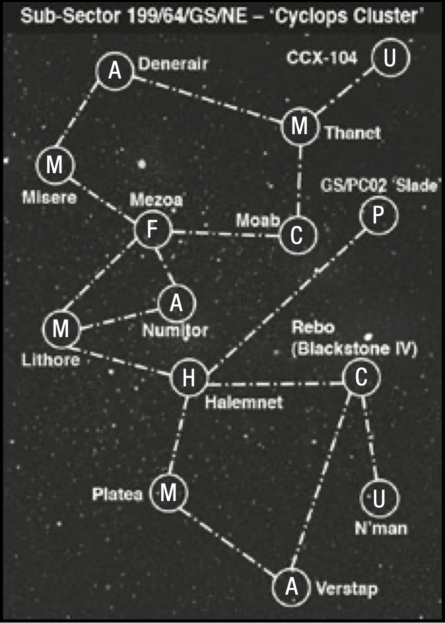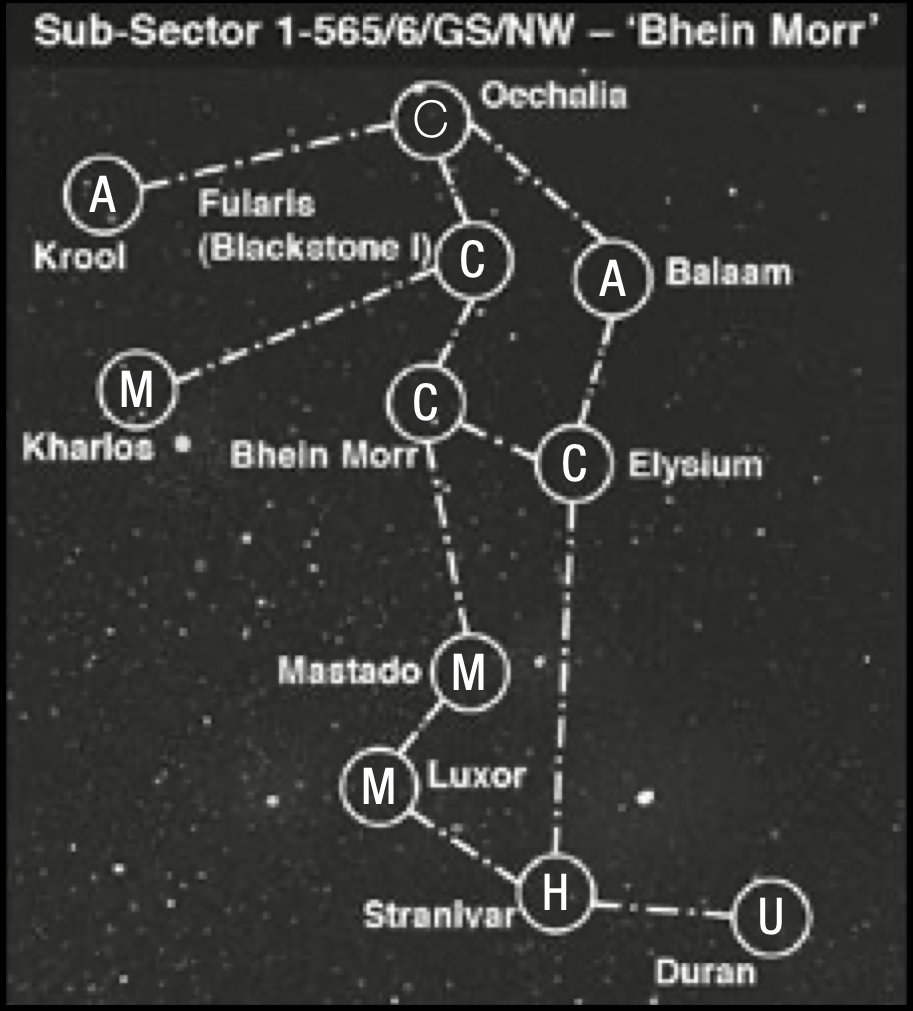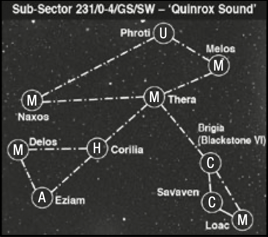 In theory it is possible to travel anywhere through warp space. However, the warp’s shifting tides make it easier to travel from some systems to others, and short warp jumps are always more accurate than longer ones. This is particularly true when moving a large fleet, which may become spread out across several light years of space. For this reason, the systems on a sub-sector map are connected by a number of warp channels to the other systems.