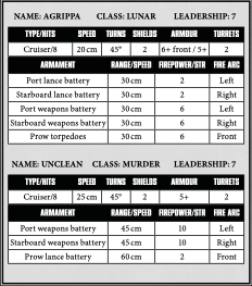 The table above represents the characteristics for an Imperial Lunar class cruiser and a Murder class Chaos cruiser.